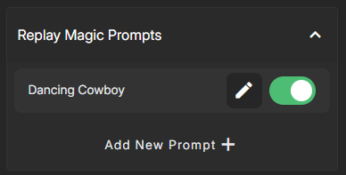 • Toggle any prompt On/Off. If toggled Off, the prompt will not be seen in the dropdown menu when using the Magic Wand button